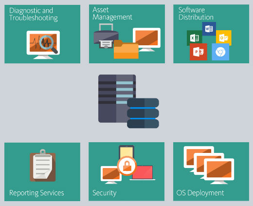 We offer implementation of resources inventory and software distribution system based on Microsoft System Center Configuration Manager and VMware vCenter Configuration Manager. Such comprehensive system requires diligent and considered configuring performed by skilled specialists for each specific task.