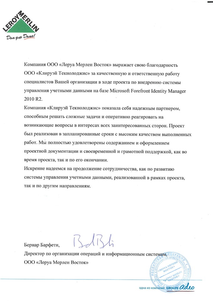 The main goal is to automate management of access rights based on employee’s data – position, department, manager and others. IT department of LEROY MERLIN is sure that Clearway team will be able to help them in achieving this goal.