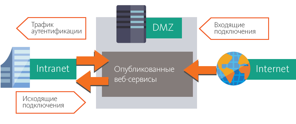 При этом "общение" этих сервисов с зоной интрасети необходимо максимально ограничить, чтобы не создать потенциальную брешь в периметре корпоративной сети. Особенно это важно в ситуации, когда веб-ресурс осуществляет аутентификацию пользователей, поскольку трафик процесса аутентификации несёт в себе критически-важную информацию, которой могут воспользоваться злоумышленники.